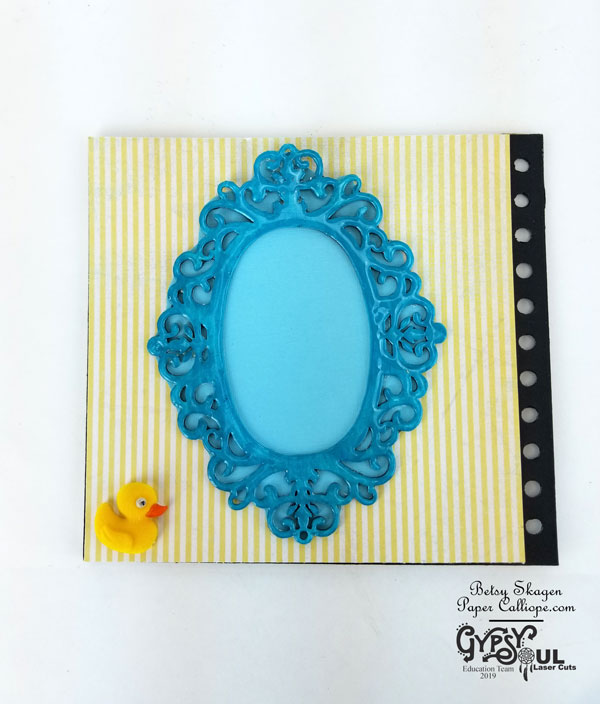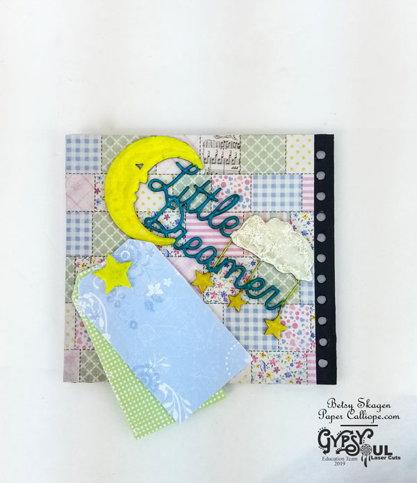 The book will feature all sorts of pockets, fold-outs and teeny little spaces to store precious mementos and tags to record different milestones and memories. I am using some of Gypsy Soul’s wonderful chipboard to add some fun elements.