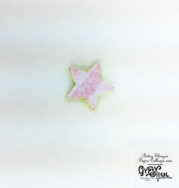 Paint the Flourished Frame Laurel, star from Celestial Shapes Set and Little Dreamer elements with gesso. Dry with heat gun. Paint in the the colors of your choice and dry with heat gun.
