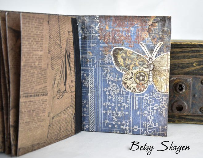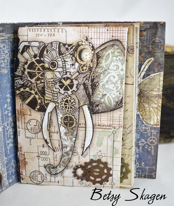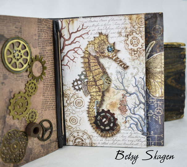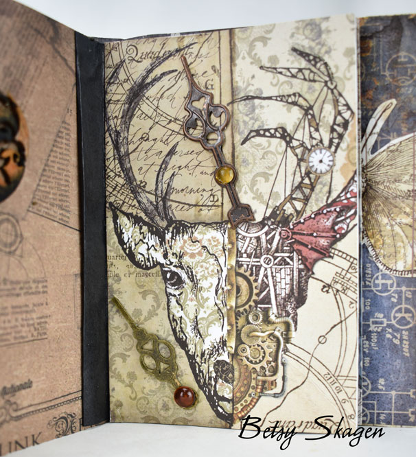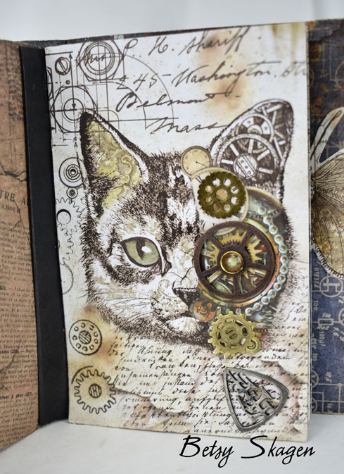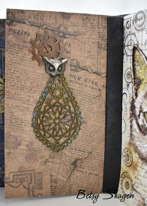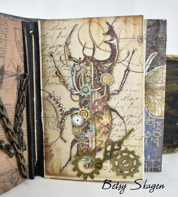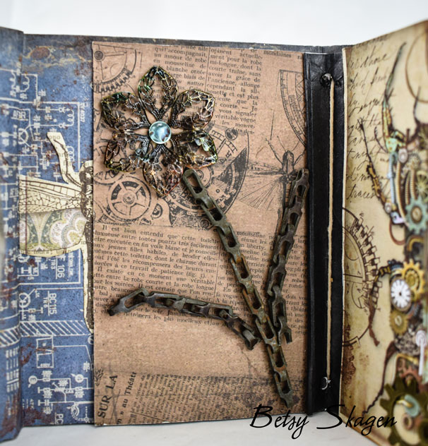 Add metal gears, clock hands, charms and other bits and bots to the inside pages.