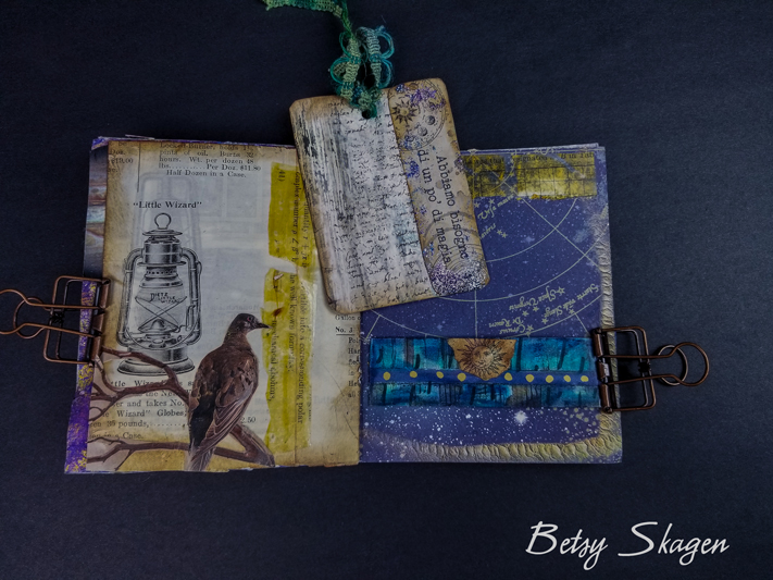 5. Wow, Betsy, I love it! Your concept of the “artiful” journal is perfect, as I’ve never liked the “junk” label. Yours is a treasury of favorite things, symbols, talisman…each in its perfectly fitted place. Thanks for sharing! ✨ 🌙