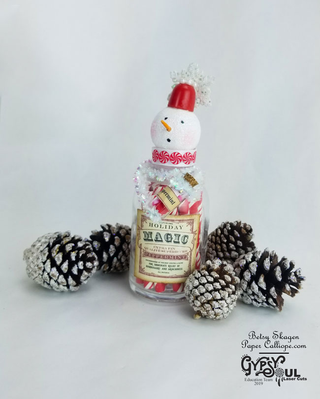 Add a tiny jar filled with tiny Perler Bead miniature candies (there are many tutorials you can find online). Add labels, such as the adorable labels made by team member Nichola Battilana and your snowman is complete.