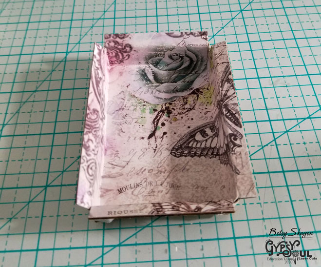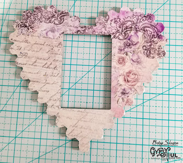 I adhered the pieces to the backside of a sheet of scrapbook paper and fussy cut the paper to match the chipboard.