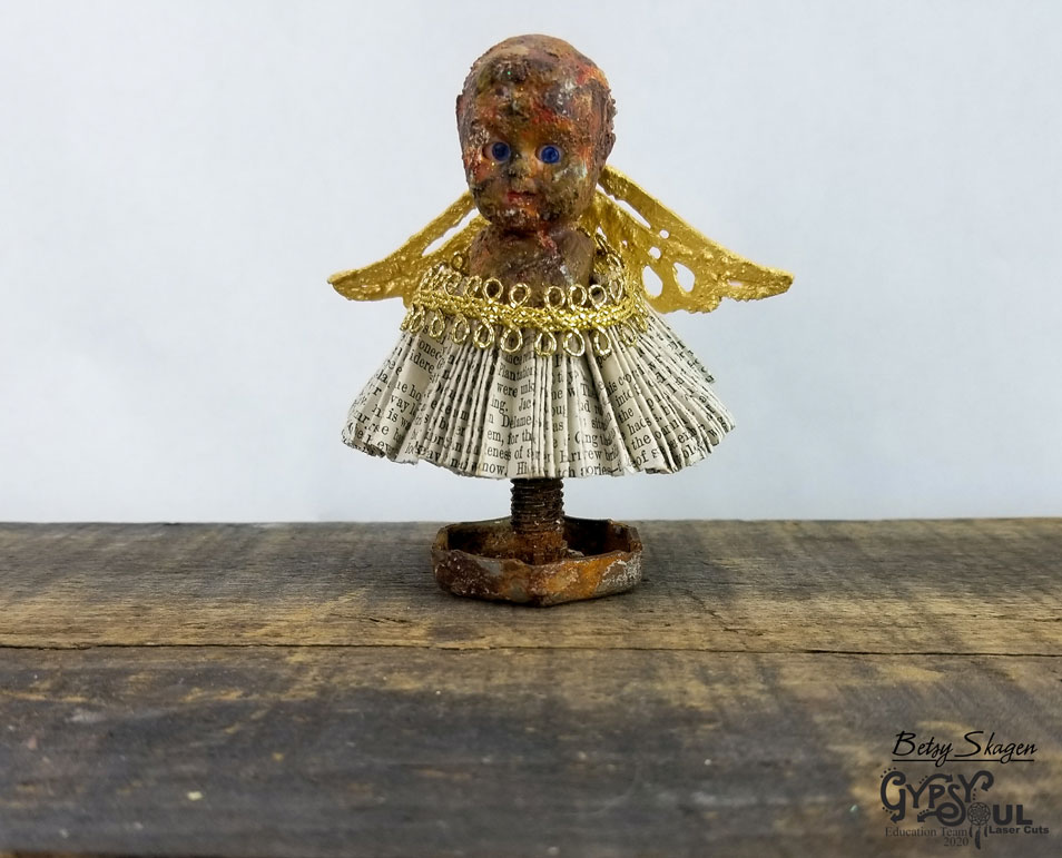 Last, I glued on some gold trim and bestowed Poor Little Baby with angel wings.