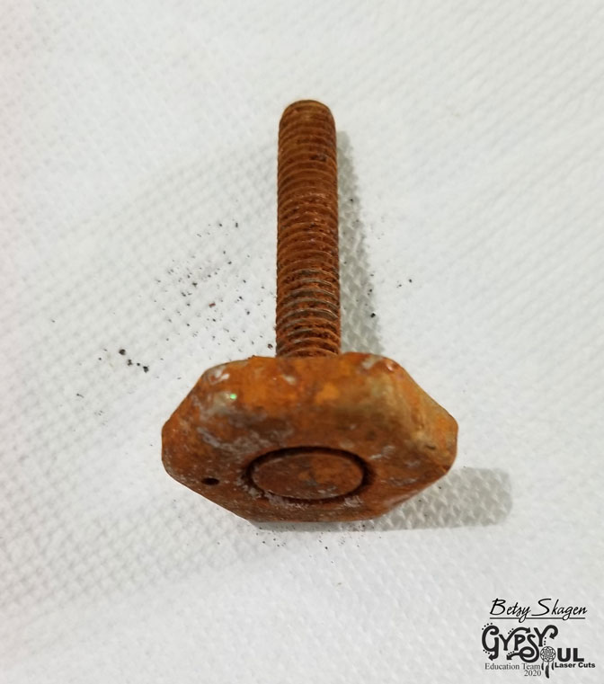 Although I could sand the piece and rust it again, since I was on a deadline I decided to use a different piece for the base. This also allowed me to use a metal piece that could actually stand without toppling over.