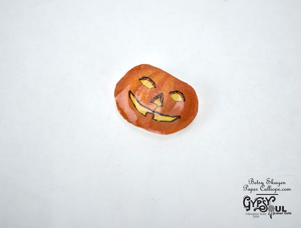 Next, cut out your vintage Halloween ephemera and cover the pumpkin with Glossy Accents. Let dry.